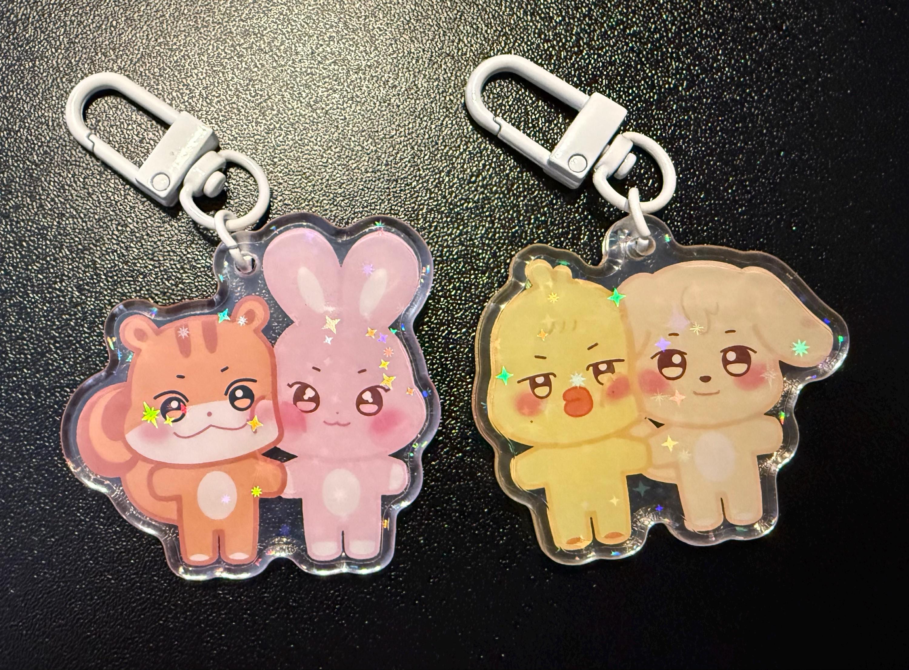 ATEEZ „Aniteez Couple“ Acrylic Keychain mit Glitzer Sternen - Seongjoong, Yungi, WooSan, JongSang